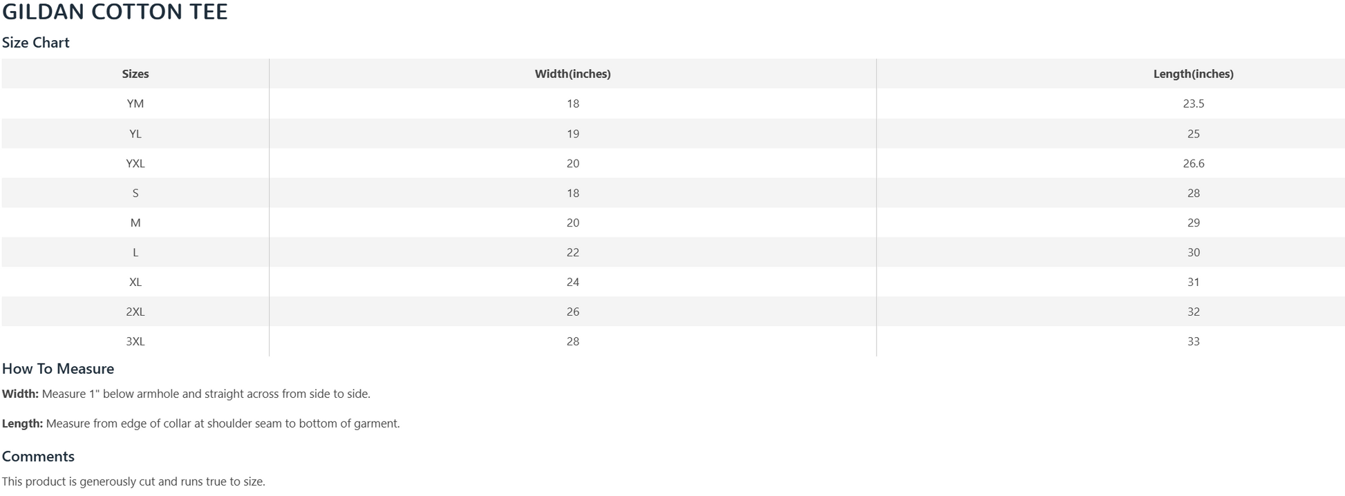 As our most cost-effective t-shirt, the Cotton Tee by Gildan is a standard crew-neck t-shirt made of 100% cotton. Its low cost and wide range of sizes make it a perfect option for large groups, events, and giveaways. If you’re designing custom t-shirts for a family reunion or 5k run, you’ll be sure to fit everyone from kids through adults with a cheap option made for any budget. It’s also available in a huge variety of colors to make it easy to create just what you’re looking for. Whether it’s a single custom t-shirt with our no-minimum digital printing option or a large screen printed order, this value-priced option is great when you’re looking for a durable classic tee. *Heather and safety colors are 50/50 cotton/poly blend. Antique colors and Sports Grey are 90/10 blend. Ash Grey is a 99/1 blend.